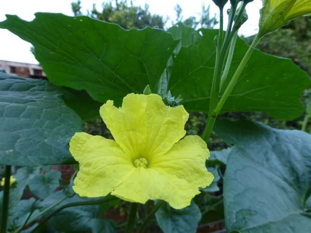 Poco después de la formación de la vid en la rejilla, usted puede encontrar un montón de flores de la planta. Todas las variedades de calabaza producen flores masculinas y femeninas. Una flor hembra puede distinguirse por la fruta pequeña unida a la flor. La flor masculina es simplemente sin cualquier tipo de frutas. Puedes ver las flores masculinas y femeninas en las imágenes aquí.