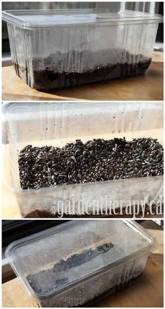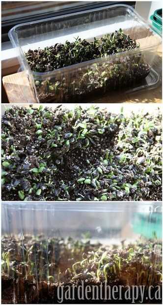 Ningún equipo de lujo la necesidad de este ajuste high-brow de ensalada. Utilicé una caja de ensalada plástico biodegradable (Asegúrese de que tiene caja fuerte del alimento); es la bandeja de suelo perfecto y el efecto invernadero. También se podría utilizar una jarra de leche cortada por la mitad, una bandeja de la torta, o lo que te imaginas que podría crear un mini invernadero.