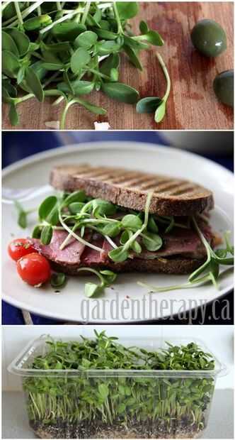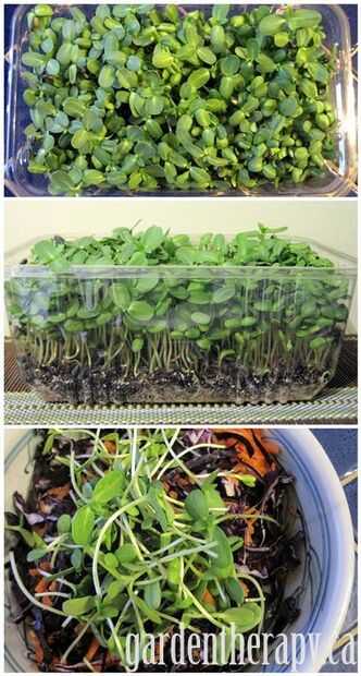 Los verdes micro están listos para cosechar cuando las plantas de semillero poderosos empuje hacia arriba el suelo (que ayuda a desprender la cascarilla negra) y hacer crecer dos hojas de semillas grasas. Cortar las plántulas en la base y lavar en un centrifugador de ensalada.