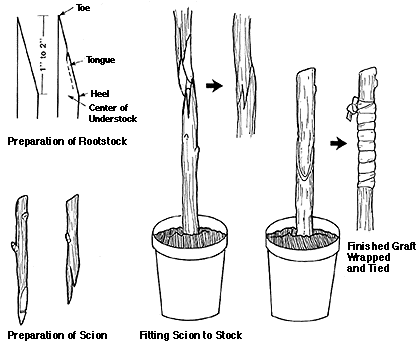 Ahora hay muchos diversos métodos de injertar manzanos pero el usar y más útil es el injerto de "Látigo y lengua".