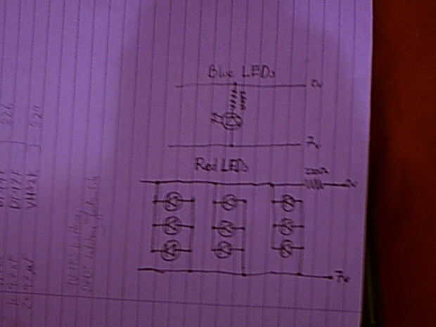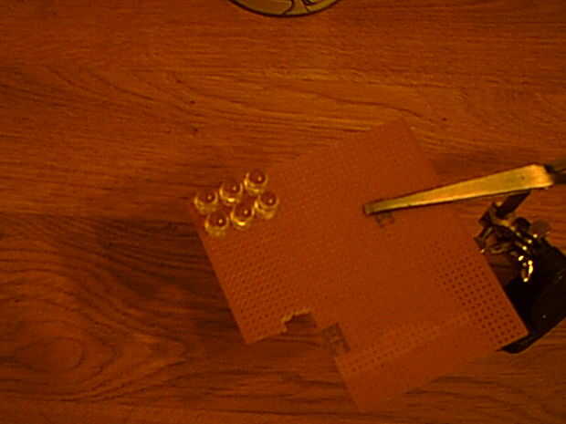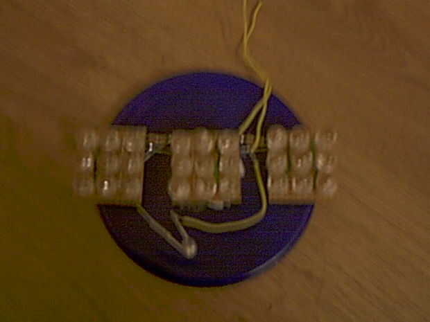 madera usando una batería de 9 voltios, algunos LED y papel de aluminio, facilitan su bicicleta ser visto desde el lado y la espalda.Desde la izquierda y derecha, un amarillo claro y de la parte trasera, una luz roja.Después de hacer seis piezas de m
