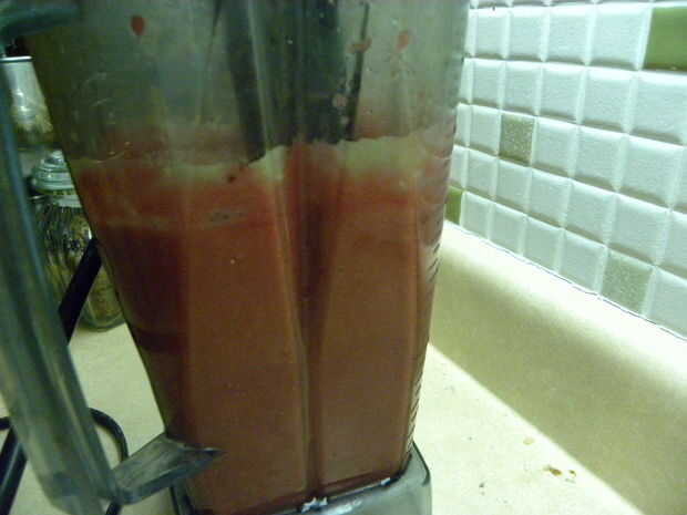 Mezcla el repollo en pequeñas cantidades a la vez. Puede empezar por añadir algo de agua. Una vez que se mezclan, pueden agregar las otras verduras y mezclarlos juntos. Vierta en un tazón grande y repita hasta que se mezclan todas las verduras.