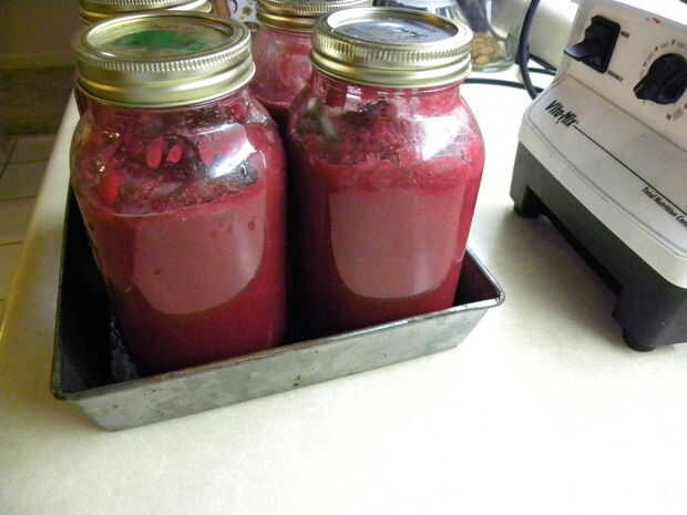 Coloque una bandeja debajo de los frascos para recoger cualquier derrame. Puesto que más zumo está disponible en verduras mezcladas, esperar que producen más burbujas de gas.