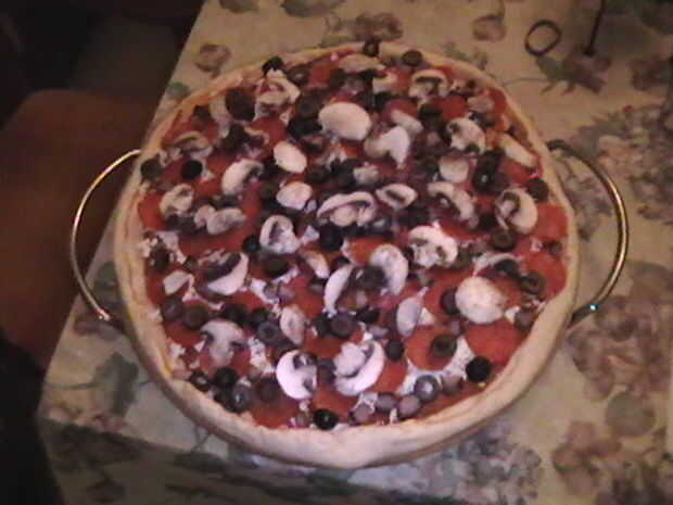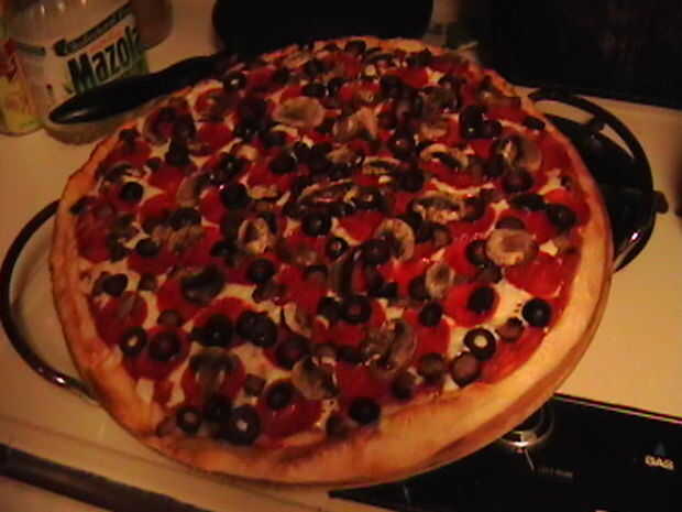 Esto hace que dos pizzas de masa delgada 15 pulgadas de circunferencia.