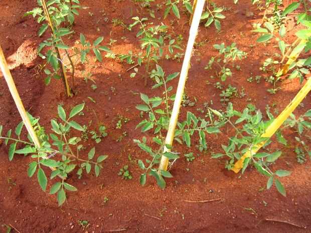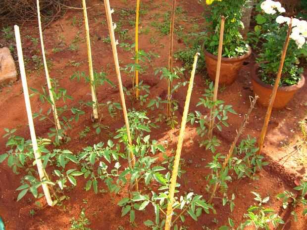Algunas plantas como tomates necesitan apoyo a permanecer erguido. De lo contrario se propagan por el suelo que puede causar la descomposición de hojas, frutos jóvenes.