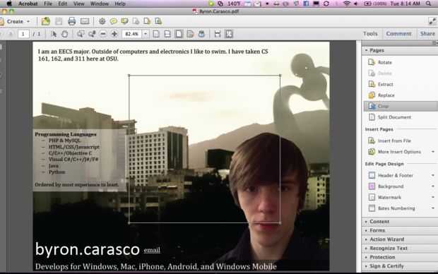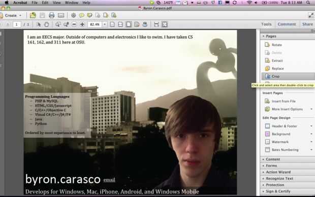 Con el documento abierto en Acrobat X, vaya al panel de páginas y seleccionar cultivos.