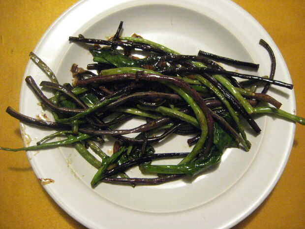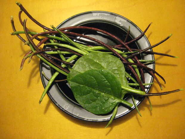 Comer las habas es la mejor parte de todo el proceso. Se pueden comer crudos, justo al lado de la planta, pero también puede cocinar los frijoles. Mi método favorito de la cocina es cortar y limpiar las judías, luego revuelva fríen con ajo, cebollas, espinaca malabar casa crecido, semillas de sésamo y un poco de mantequilla y salsa de soja o hoisin. Cuando cocinado de esta manera, los granos pueden ser comidos solo o pueden ser cubiertos sobre arroz o pasta para una comida completa.