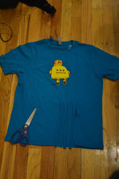 Paso 2: Cortar tiras de la parte inferior de la camisa