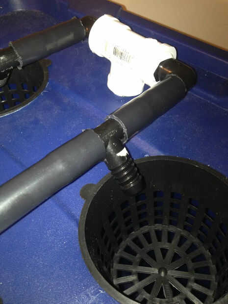 las raíces crecen fuera de la olla y se sumerja en una solución nutritiva peróxida constante.El sistema se alimenta de una potente bomba de aire de dos vías con piedras porosas que perfeccionan las cantidades de la solución de peróxido y por lo tanto