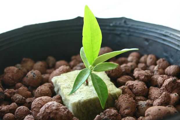 Plántulas siembra ayuda para cultivo hidropónico con guisante grava