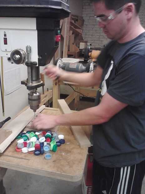 Cada tapa debían ser perforados con un agujero para que la cadena podría caber fácilmente a través de, pero no lo suficientemente grande como para que la lavadora atada al extremo de la cuerda también vendría a través de.