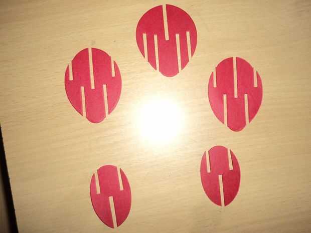 AHORA corta un óvalo grande (1) y menor que el de un CM (2) y más pequeño que los que por 1 CM (2) y hacer cortes en como se muestra en las fotos, y mientras que a conseguir la pista de los cuadros en otras medidas y también añadir un hilo de gran corazón con cinta de CELLO para saber más sobre forma verlo;-) , haga clic en este enlace