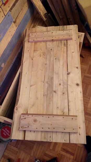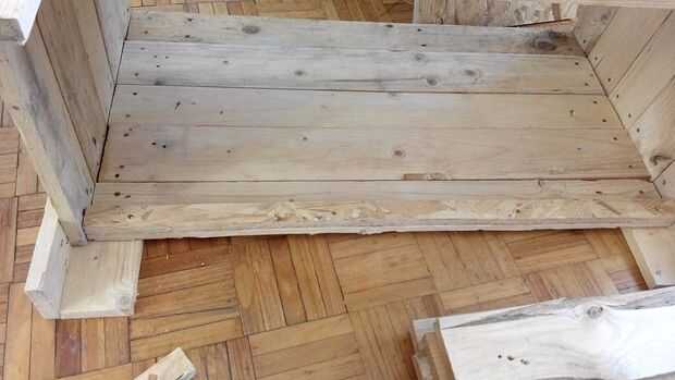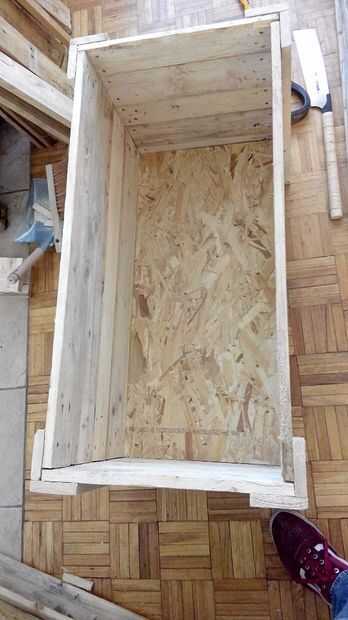 Sólo cinco tablones mantener unidas por tornillos y los dos tablones del 34,5 cm. Si bien estos caben en el interior de la caja.