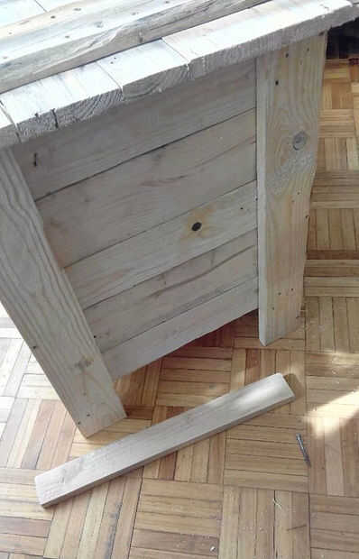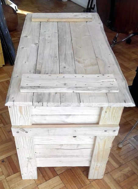 Al final para atornillar las manijas e hicieran algunos acabado con laca, pero claro podría utilizar cualquier mancha, pintura u otro sellador para proteger la madera. Recuerde que esto fue una plataforma y dependiendo del estado o del tratamiento de la madera en su ex vivo tendrá más o menos protección contra el tiempo.