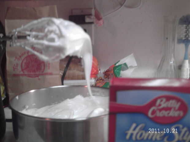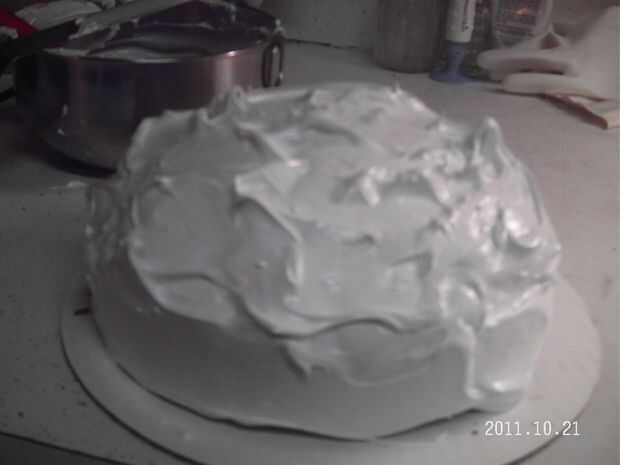 En este punto usted simplemente helada la tarta con glaseado de Betty Crockers casero esponjoso blanco o el betún de siete minutos. He encontrado que esta helando funcionaba bien y era más como la torta de la bola de nieve verdadera en sabor y textura.