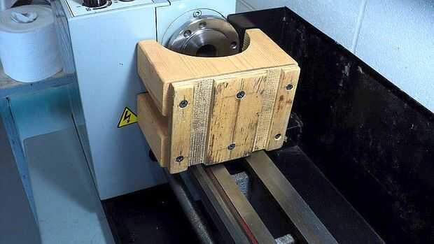 La base era doble acanalado para permitir el accesorio abarcar sobre el prisma de la cama del torno, chepa triangular que guía el carro cuando se gira para cada perfil.