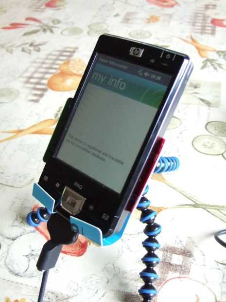 Había comprado este paquete de accesorios, que incluye una copa de succión, para mi Pocket PC en mi escritorio, ya que no parecen vender oficial cunas más. La Copa probablemente estaría bien para un dispositivo más pequeño y ligero, pero mi iPAQ 214 es bastante voluminoso y demasiado pesado para la Copa. Así, inspirado en el soporte de iPhone de Nylanan hecho de una llave de la habitación de hotel, he creado esto: