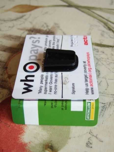 Por último, despegue el revestimiento de la pinza de espalda pegajosa y pegarlo a la parte posterior de las tarjetas pegadas. Esto debe ser probablemente más cercano a su centro de gravedad del dispositivo si es pesado como el mío, ya que es donde se fija el Gorillapod. El soporte debe trabajar para el modo apaisado, en el caso de mi iPAQ.