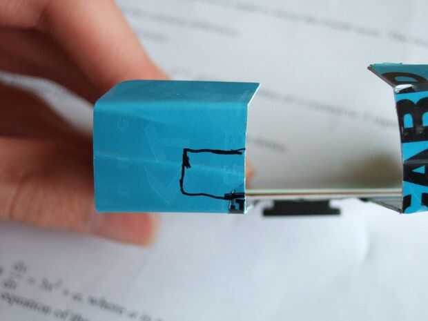 A continuación, marca la zona que necesite retirar la tarjeta y corte a lo largo de los lados (probablemente desee retirar la cinta del pato para esta parte). Luego doblar hacia arriba y cortar otra vez (las imágenes explican esto). Comparar al puerto o enchufe y corte adicional si es necesario. Cuando termine, limar de pulcritud.