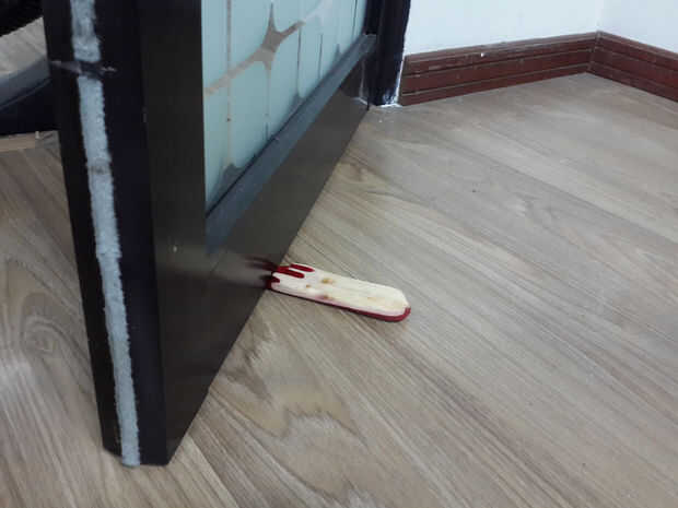 1. tadaaaaa! ahora se hace la cuña de madera-resina-tapón de la puerta