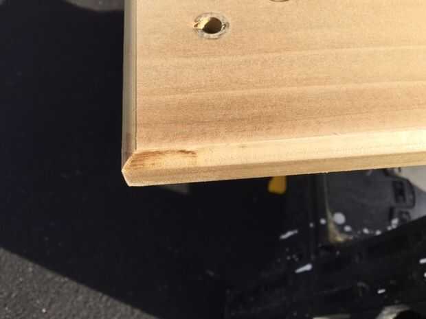 1. acabado de los bordes: esto no es necesario pero para darle algunos detalles y un aspecto más acabado decidí usar un cuarto de pulgada redonda sobre pedacito en mi router para rematar los bordes. Usted podría utilizar lo que quieras o coincide con el aspecto general de su cuna. También podría pasar a lijar la pieza y eliminar los bordes afilados de esa manera.
