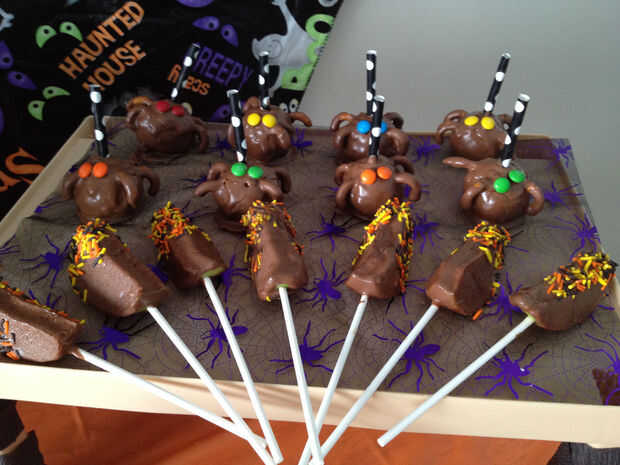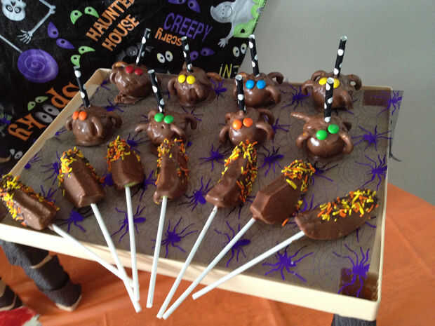 Espolvorear todo o sólo la mitad superior con chispitas de colores y soporte en soporte pop de la torta o solo los ponen en rack/pergamino hasta que
