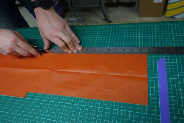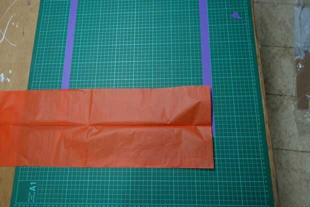 Una vez que ha podido cortar el papel al tamaño correcto, sólo utilizamos la cinta para cortar un patrón áspero. Luego se aplicaron con cierta proyección.