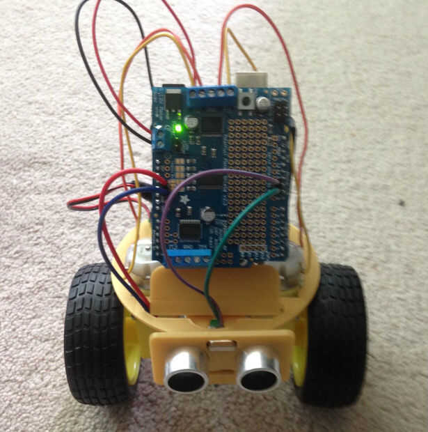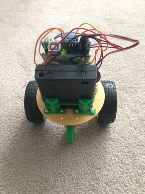 Antes de sacar el bot para un funcionamiento de prueba, use una taza Venti y añadir por encima los componentes electrónicos y las baterías como se muestra en la foto de arriba.