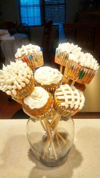 Nota: Puede ajustar cupcakes que vas o la colocación del palo de brocheta debajo del Magdalena según la dirección quiere que vaya.