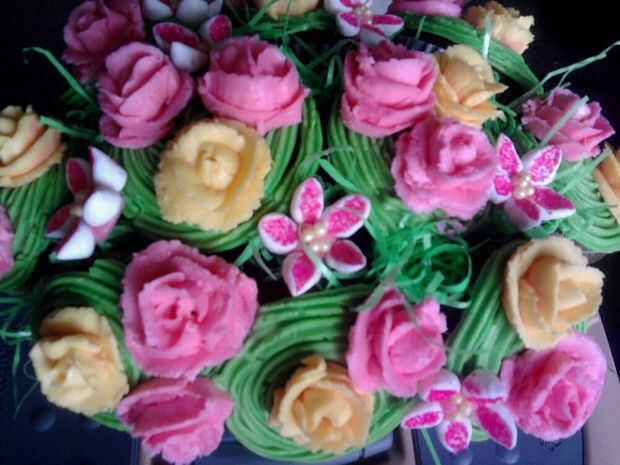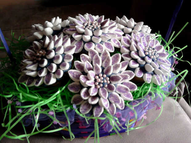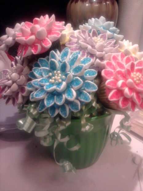 hecho un buen amigo para su cumpleaños, este es un arreglo de cupcakes de helado de crema!