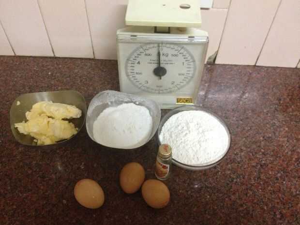 175gms 175gms auto levantando la harina la mantequilla 175 gms echador de azúcar 2 cucharaditas esencia de vainilla 3 huevos