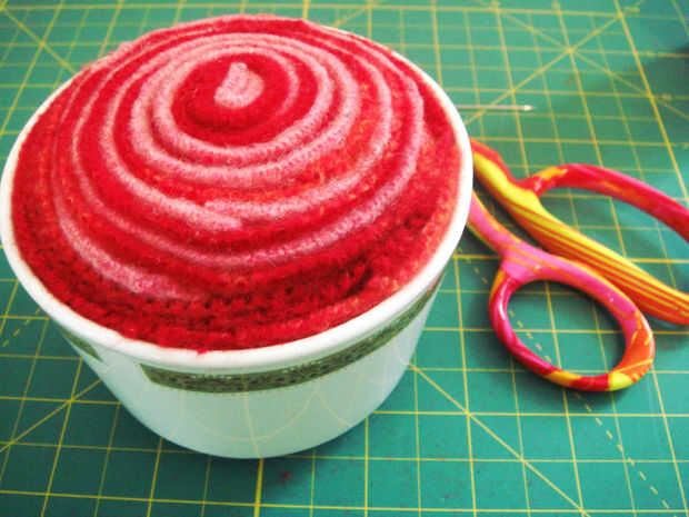 Hice el alfiletero de la taza de té debajo para un intercambio y fue tan divertido y lindo que decidí escribir un breve tutorial sobre cómo hacerlo. Sería un gran regalo para el día de la madre, o una para un amigo con un lindo costurero así! (Hice el alfiletero en la taza de crema para mí).