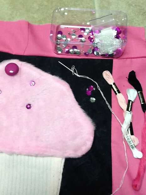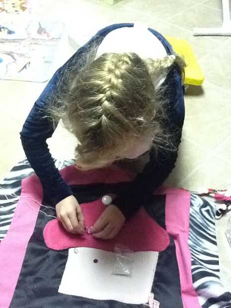 Para coser las lentejuelas, usé hilo de bordar para ahorrar tiempo. Porque usé tres soportes de la rosca de la bordados a la vez, sólo tuve que coser dos veces para cada lentejuelas ya que es triple la rosca. Los niños ayudaron a coser lentejuelas un par, pero desafortunadamente, no cumplió su atención por mucho tiempo.