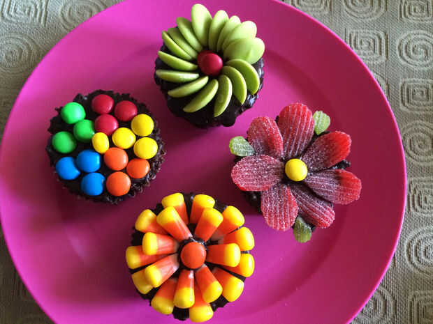 Preparé estos cupcakes bellos y deliciosos para mí como yo me antojo de algo dulce y chocolate. Decorado la tapa con ingredientes coloridos y simples y no podía creer cuán hermosos estos resultaron :)