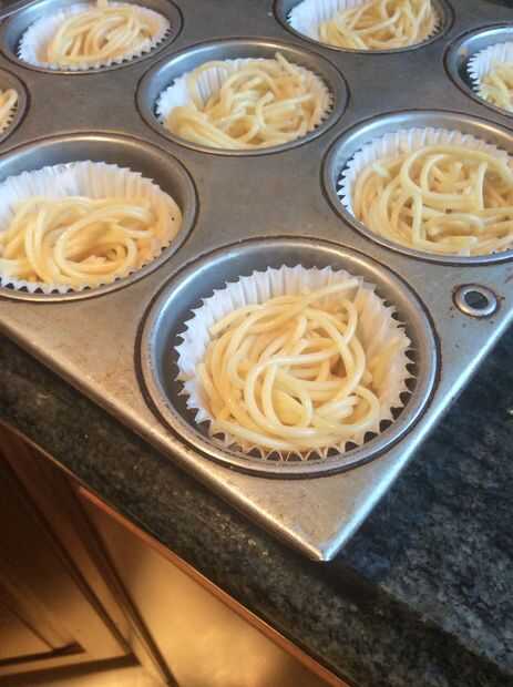 Spaghetti en albóndigas. No tengo ni idea de donde provino la inspiración para este aperitivo. Una increíble visual sólo apareció en mi cabeza la semana pasada y no desaparece.Funcionó la idea por un amigo cercano que parecía algo dudoso que esta r