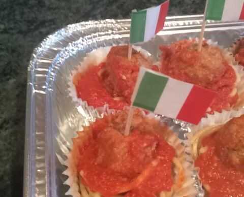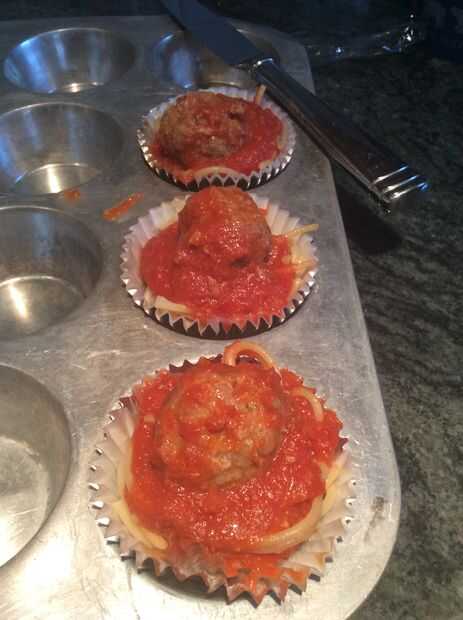 Spaghetti en albóndigas.  No tengo ni idea de donde provino la inspiración para este aperitivo.  Una increíble visual sólo apareció en mi cabeza la semana pasada y no desaparece.Funcionó la idea por un amigo cercano que parecía algo dudoso que esta r