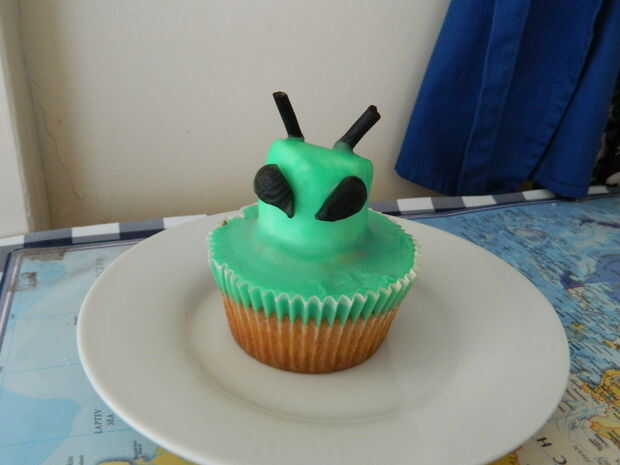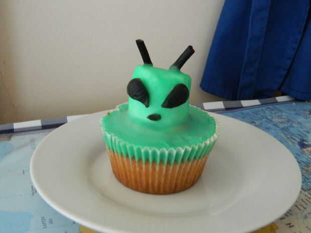 este es un divertido sci si decoración. Lo siento por el revés de fotos y foto mala calidad--es mi primer instructivo!Paso 1: materiales 2 conchas de pastel tarta1 vaso de plástico1 palo de chenilla corta por la mitadFigura alien 1 (que se muestra es