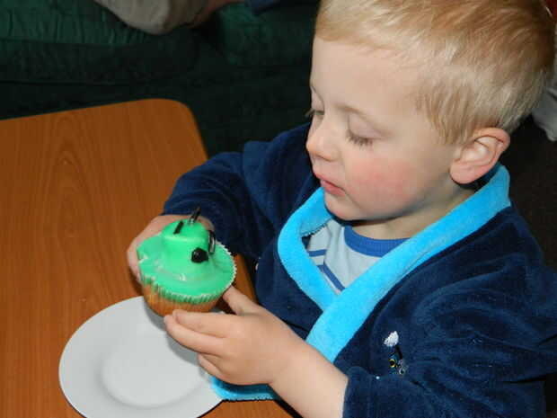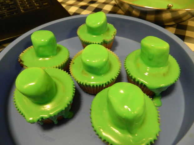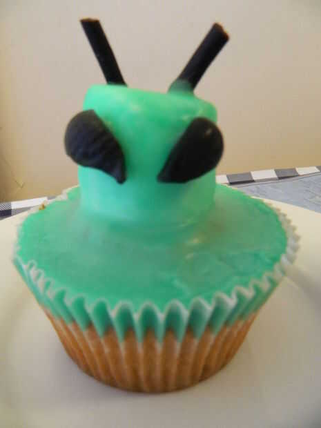 estos chicos son muy lindos... y muy fáciles de hacer!1. hacer un verde bonito glaseado de mantequilla y lisa un remolino redondo encima de cada cupcake(Consejo: Mantenga la cuchilla y gire a la Magdalena para conseguir una bonita forma redonda)2. us