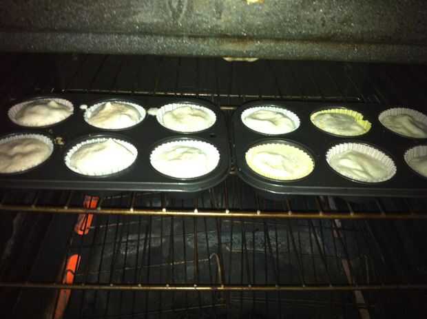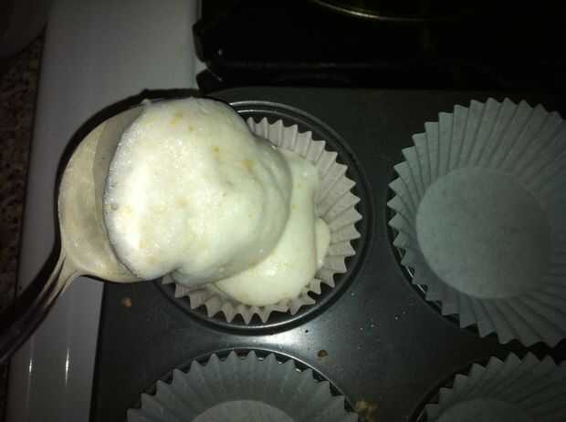 Cuchara de la mezcla en moldes de Magdalena de líneas y hornear durante unos 30 minutos en un precalentado, 375o F horno.