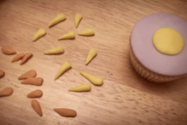Rodar una pelota mediana de pasta de azúcar amarilla.