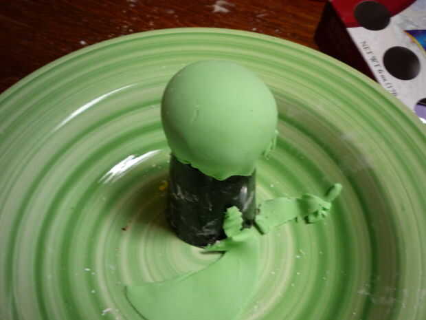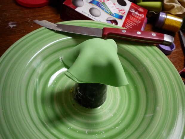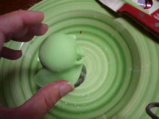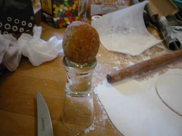 [Mis agujeros de donut habían granulado de azúcar en el exterior, que parecía mostrar a través de la pasta de azúcar, por lo que algunos de ellos en sobras helar antes para cubierta cubierto, pero si el agujero del donut es liso, esto no debería ser necesario. Prueba primero 'pelado' y ver cómo lo hace, ya que tiende a ser más fácil trabajar con esa forma. ]