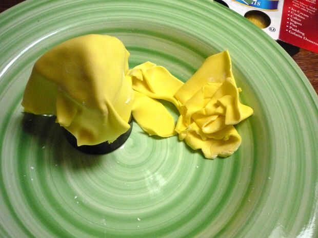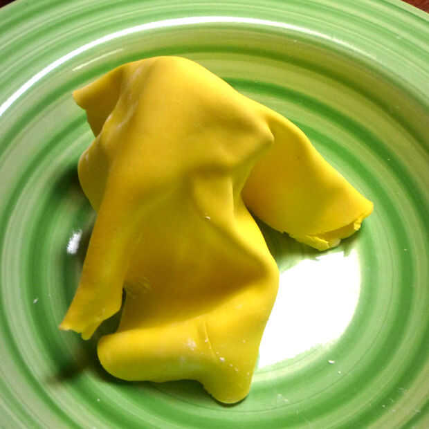 Si cagarla por alguna razón, o rompe el fondant, no se desespere. Simplemente cubra todo esto con una segunda capa de fondant amarillo!