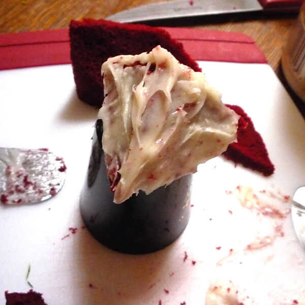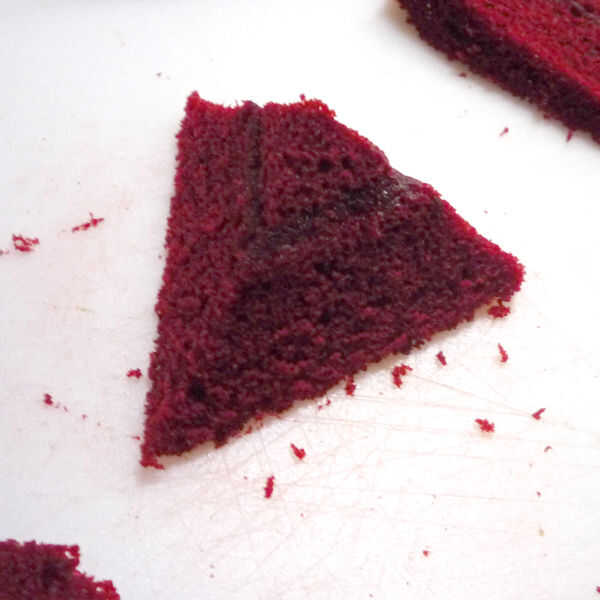 - Tomar un cubo de pastel 2 en alto. Tallar en una pirámide echada a un lado 3.