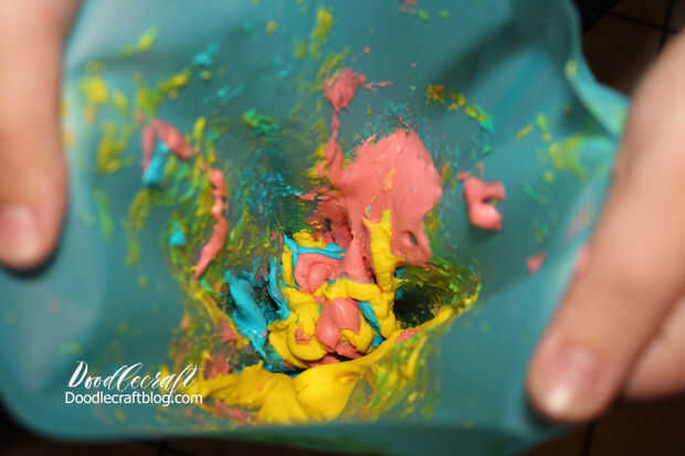 A continuación, colocar gotas de cada derecho de color en su bolso de helar.