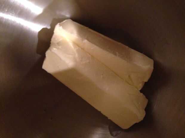 1. batir la mantequilla con la batidora o a mano hasta que cremoso y suave a velocidad media (aprox. 1 minuto).