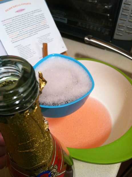 Combine todos los ingredientes y mezclar bien. El bateador conseguirá ligeramente espumoso en el primero debido a la carbonatación en el champán.