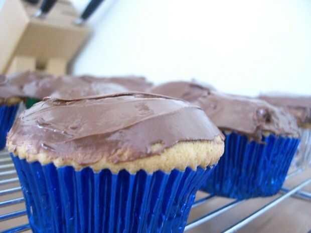 Hornear durante unos 25 minutos hasta que estén doradas. Para comprobar si están cocidas, introduzca una brocheta en el centro de uno de los cupcakes, debe salir limpio.