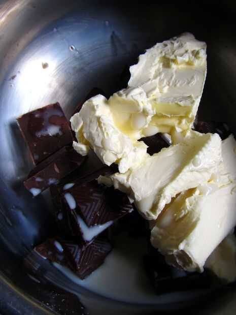 Para hacer el glaseado, primero derretir la mantequilla, el chocolate y la leche en una cacerola pequeña.