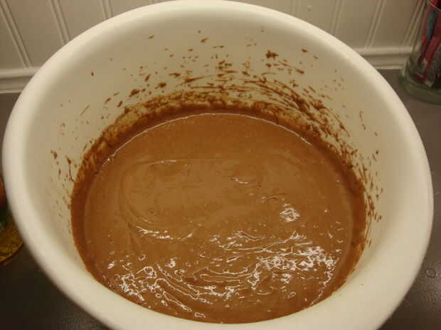 Preparar la mezcla de pastel de chocolate según las instrucciones del paquete, pero no cocer al horno.