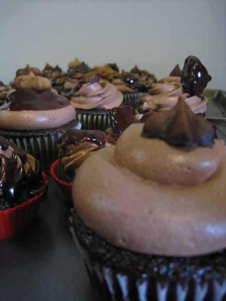 Salpicar el ganache sobre cupcakes o sumergir cuidadosamente en ganache